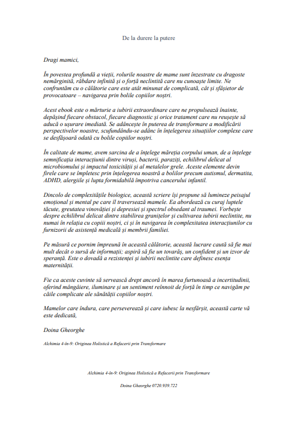 Cartea oferă speranță, claritate și sprijin mamelor, ajutându-le să navigheze situații medicale complexe cu curaj, iubire și încredere în propriile instincte.