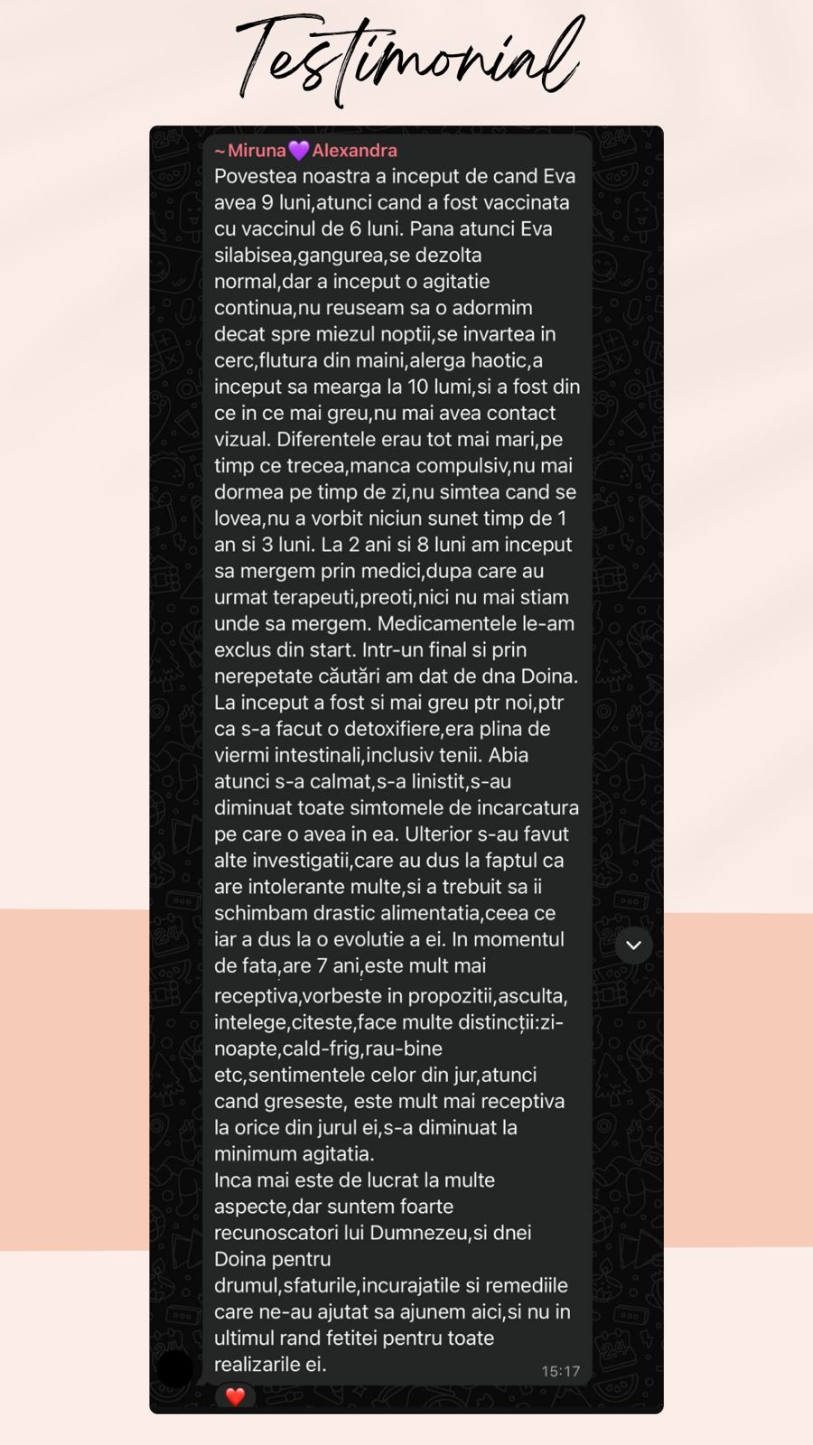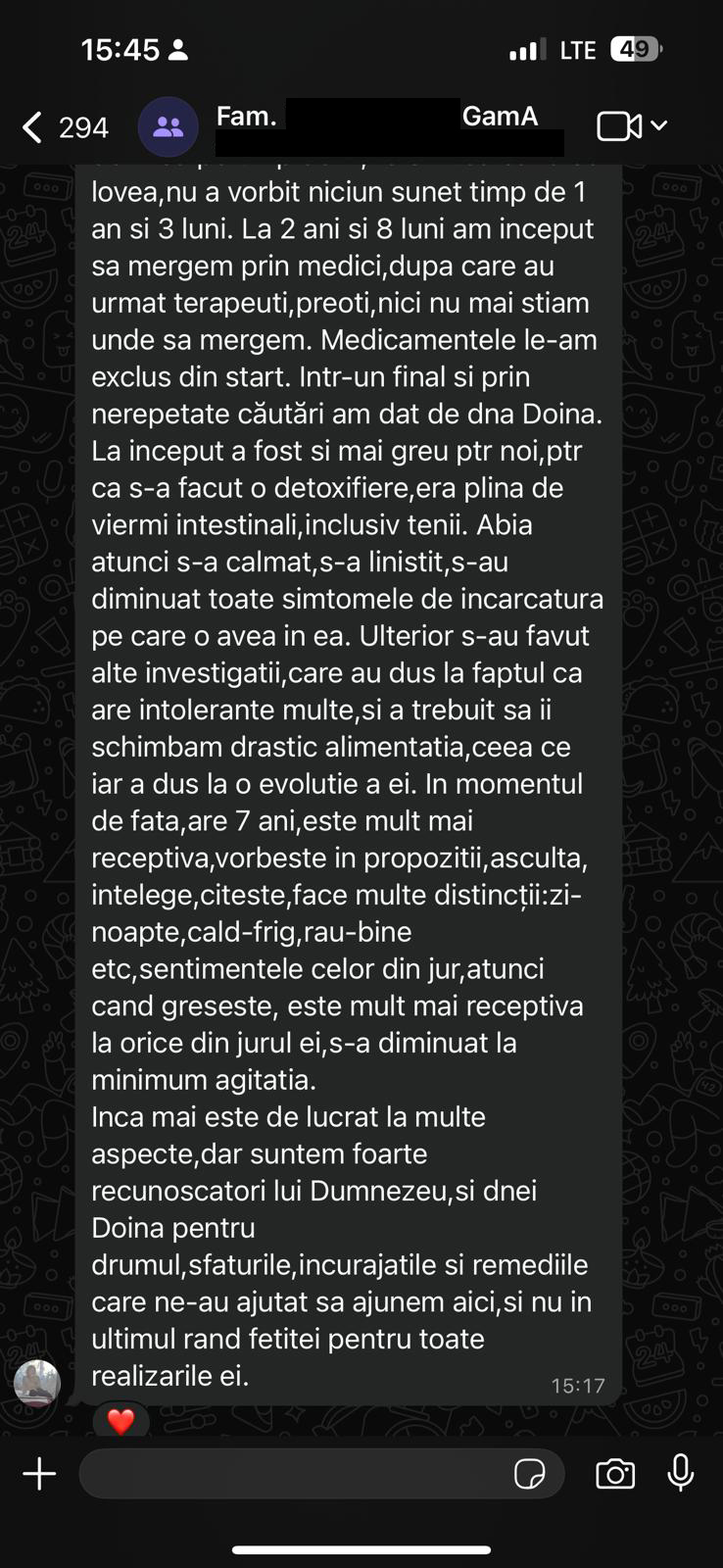 Am gestionat cu succes peste 4.000 de cazuri de reglare a microbiomului și digestiei, precum și peste 400 de copii cu probleme neuronale de dezvoltare (autism, epilepsie etc.)